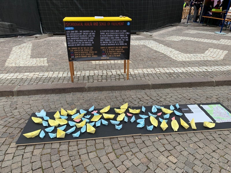 La caccia al tesoro "The pursuite of happiness" è stata progettata nel 2019 da due studenti del Master in Design Ecosociale di unibz. Il percorso con 11 stazioni è il risultato di un processo partecipativo in più fasi realizzato da Maren Schönthaler ed Emanuele Broglio.